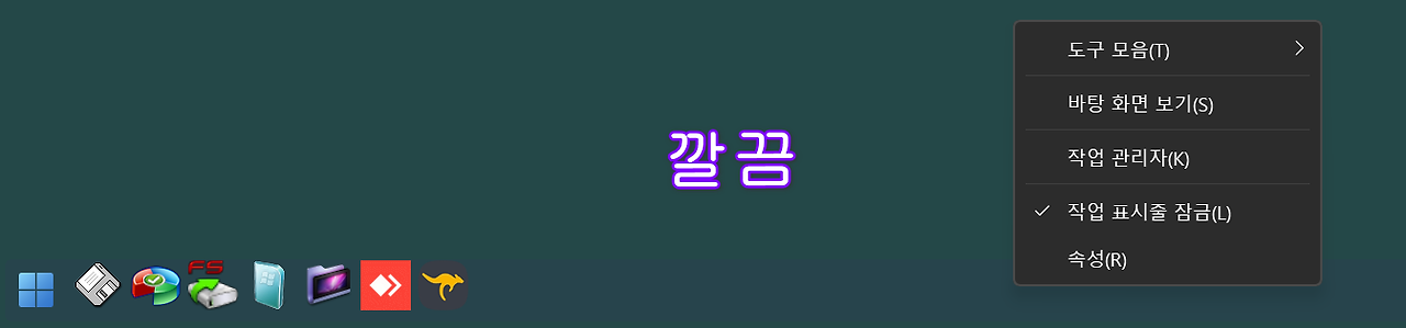 PE에서는 "검색" "작업 보기 단추 표시 " 두가지가 보기 싫고 자원 부족으로 무용 지물이며